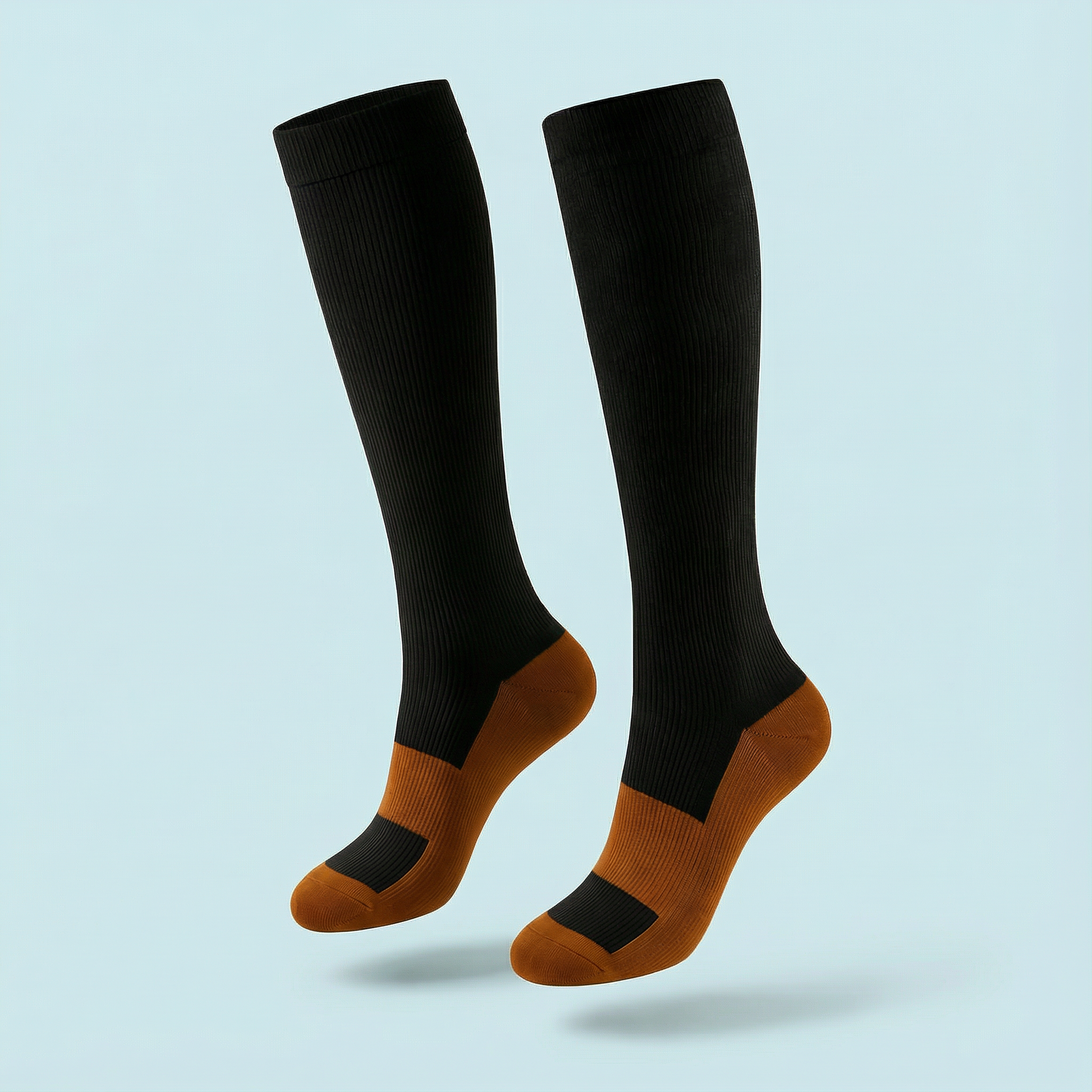 Kurz gesagt, Kupfer-infundierte Kompressionsstrümpfe sind Kompressionsstrümpfe, die du tatsächlich tragen kannst. Schluss mit dem Kampf gegen unbequeme Strümpfe oder verschriebene Modelle, die du nicht nutzen kannst.
